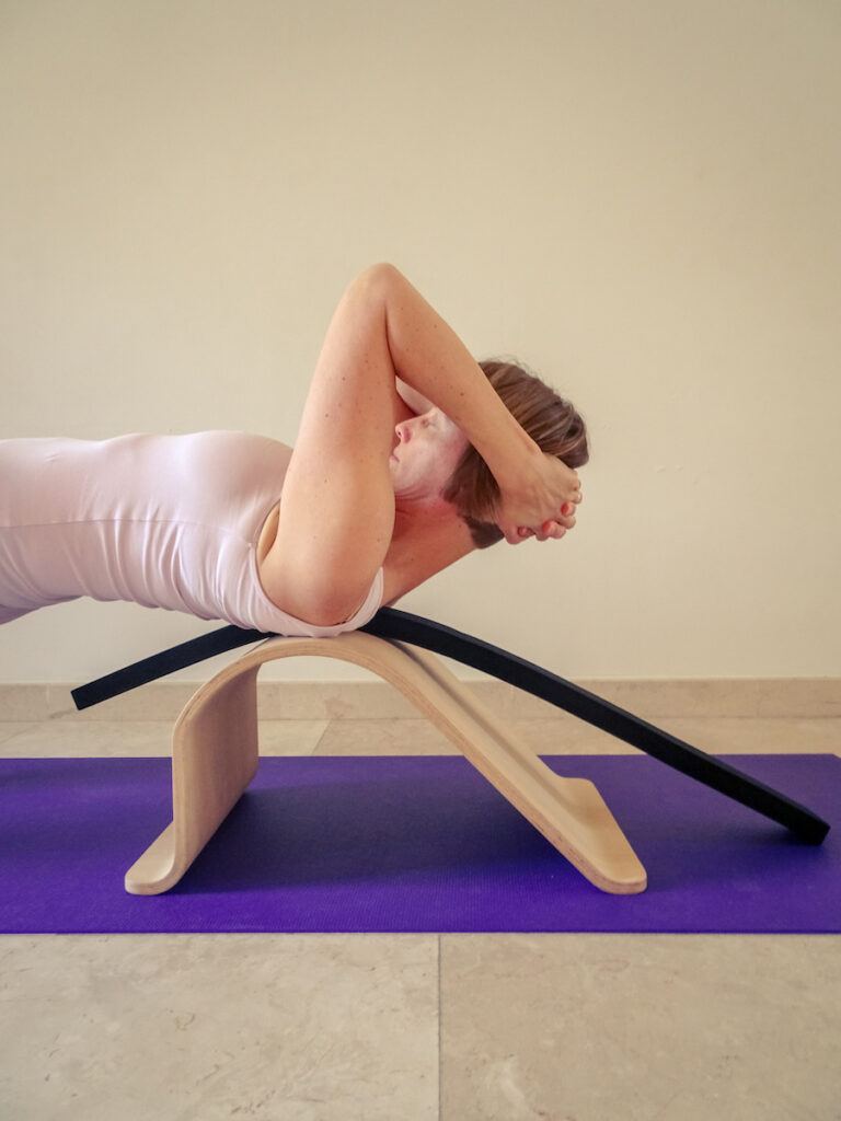 In de yogastudio zijn yogamatten, stripjes, vilten matjes en schouderstandblokken aanwezig. Als je een hoofdstandbankje of houten boog hebt, dan mag je die meenemen.